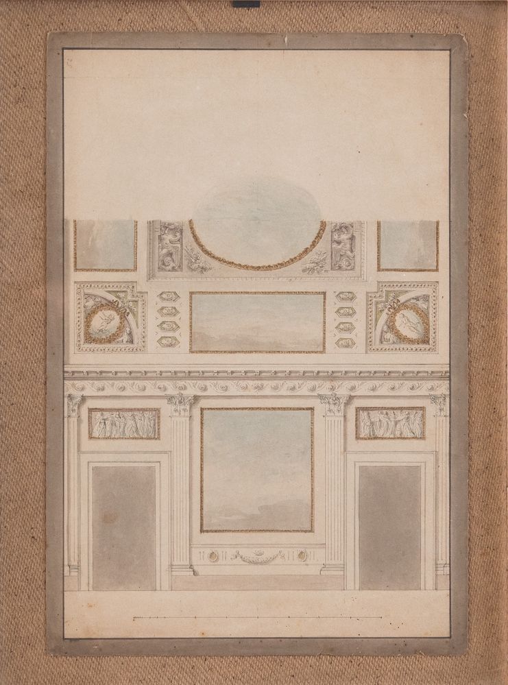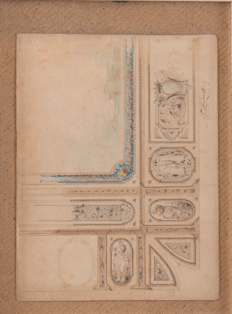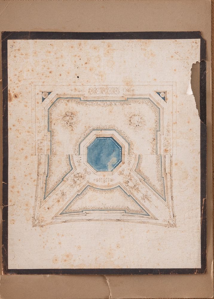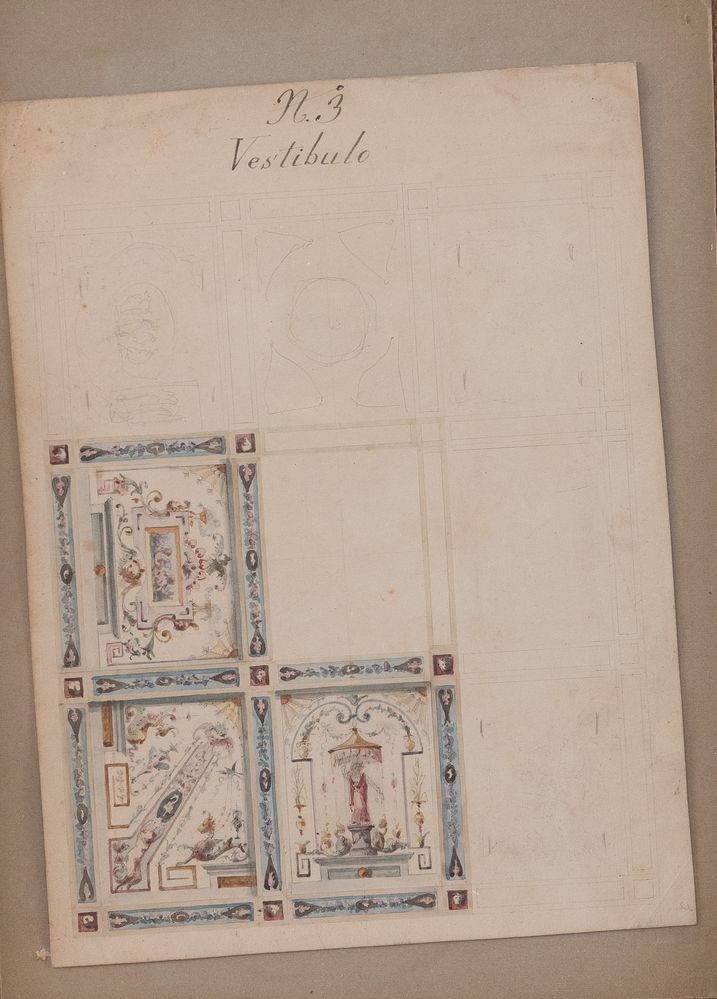Maestro del XIX secolo. "Studio di architetture". Lotto composto da sei acquerelli e china su carta, con firma Andreotti. Cornice cm 46x36.