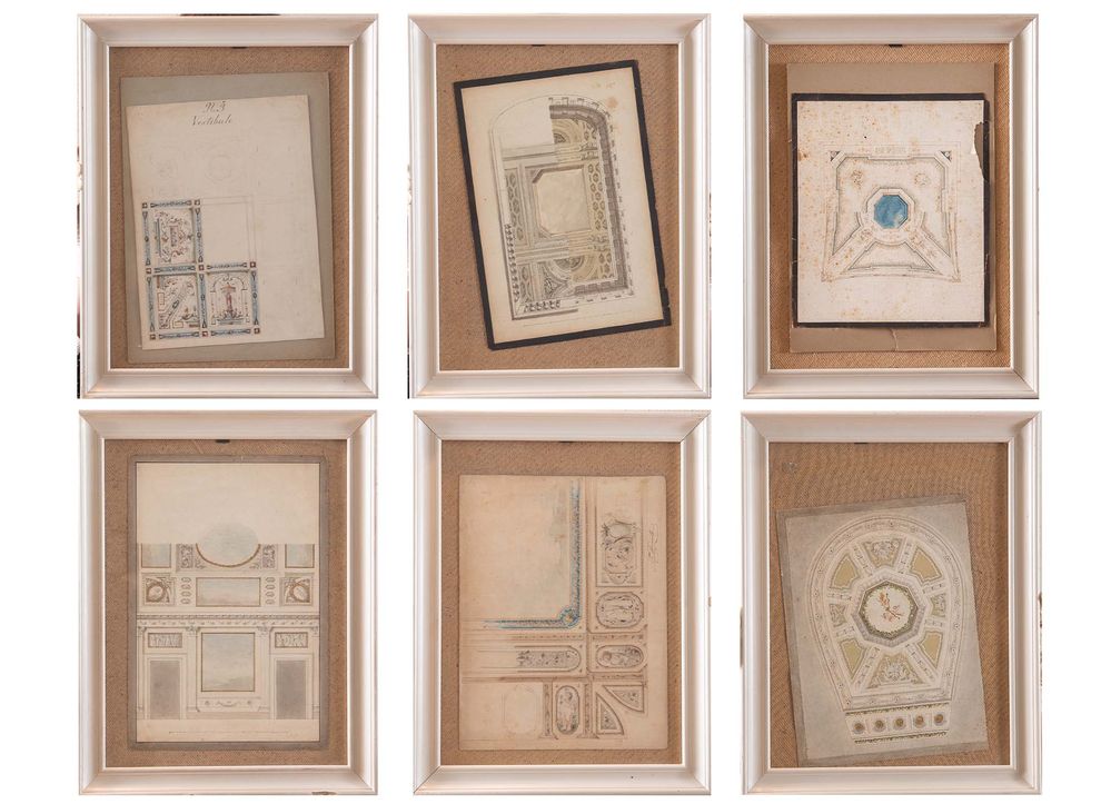 Maestro del XIX secolo. "Studio di architetture". Lotto composto da sei...