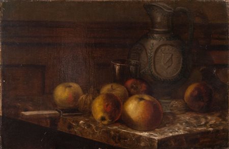 Maestro degli inizi del XX secolo. "Natura morta". Olio su tela. Cm 31x46.