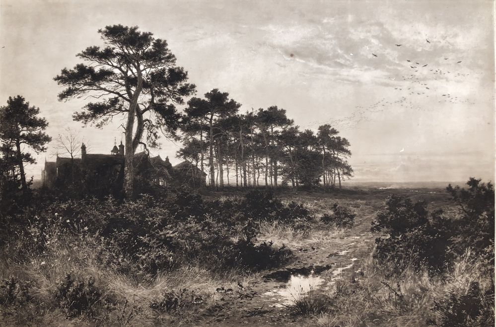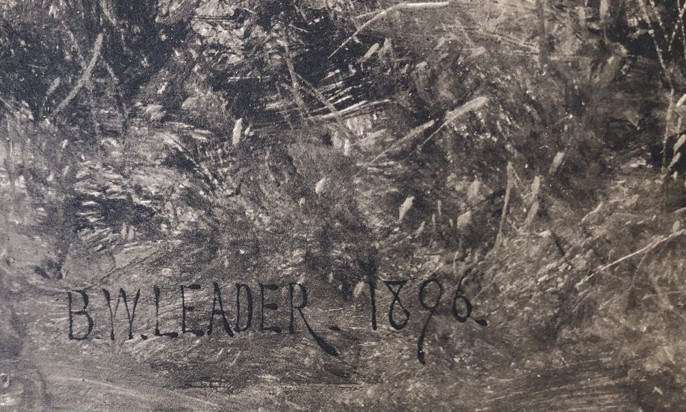 BENJAMIN WILLIAMS LEADER (Worcester 1831 - Shere 1923) "Paesaggio", 1896. Stampa su carta. Cm 50x74. Opera firmata e datata in basso a sinistra B.W.Leader 1896. Al retro reca etichetta di Artaria and Co, Vienna.