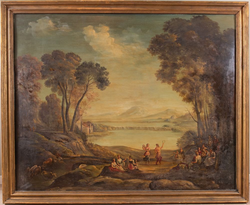 Maestro del XIX-XX secolo. "Paesaggio in stile neoclassico". Cm 122x153.