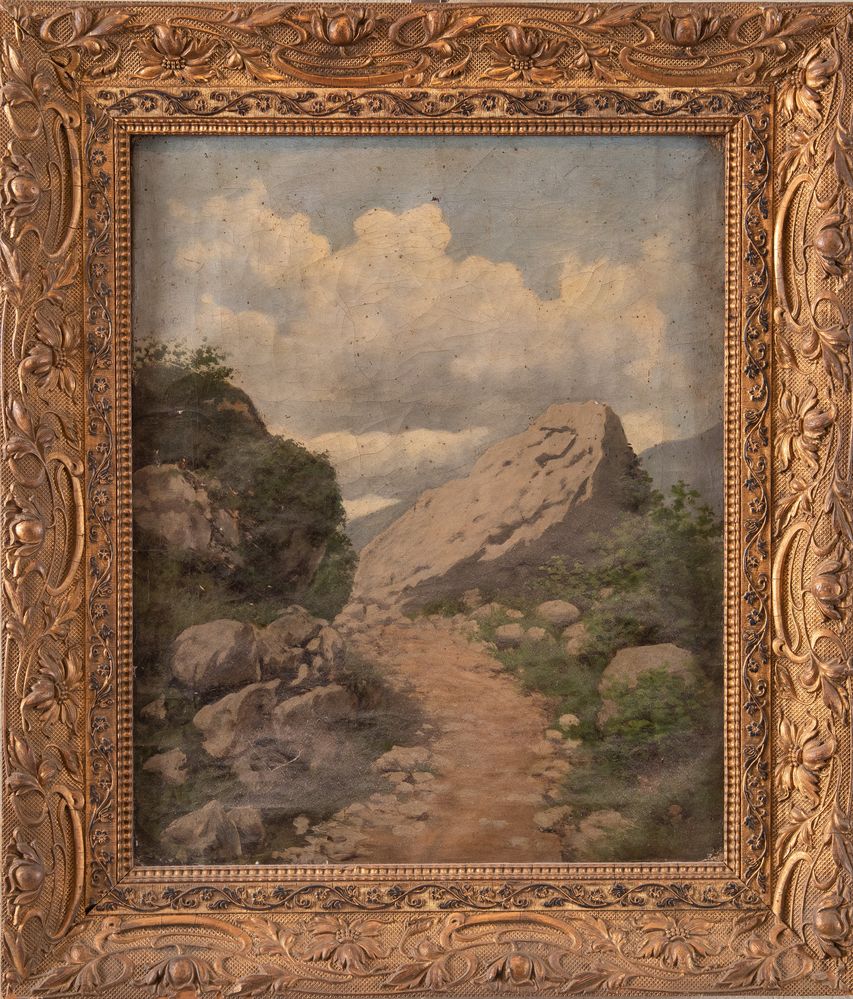 FILIBERTO PETITI (Torino 1845 - Roma 1924) "Paesaggio". Olio su tela. Cm 46x37,5. Al retro reca firma e data Filiberto Petiti 1910