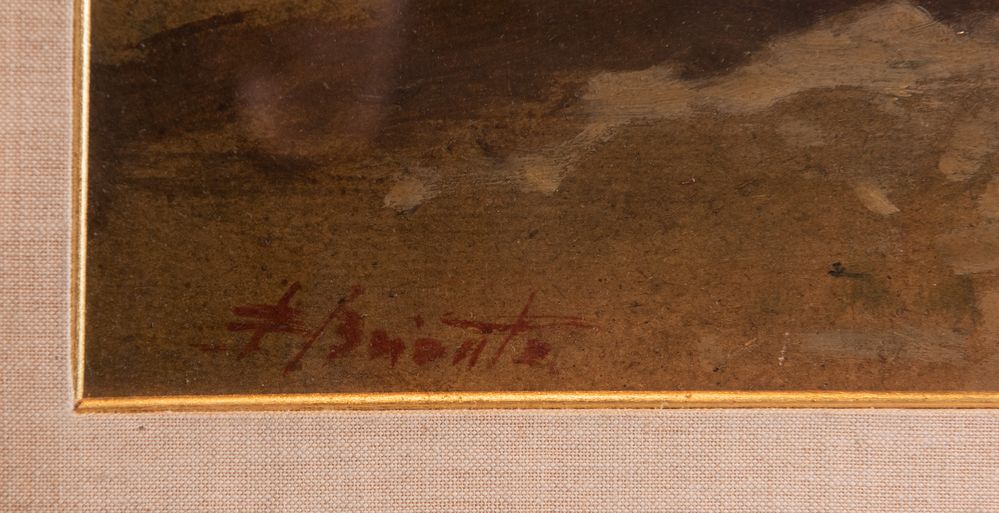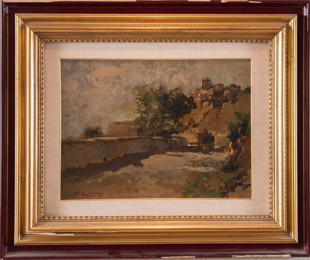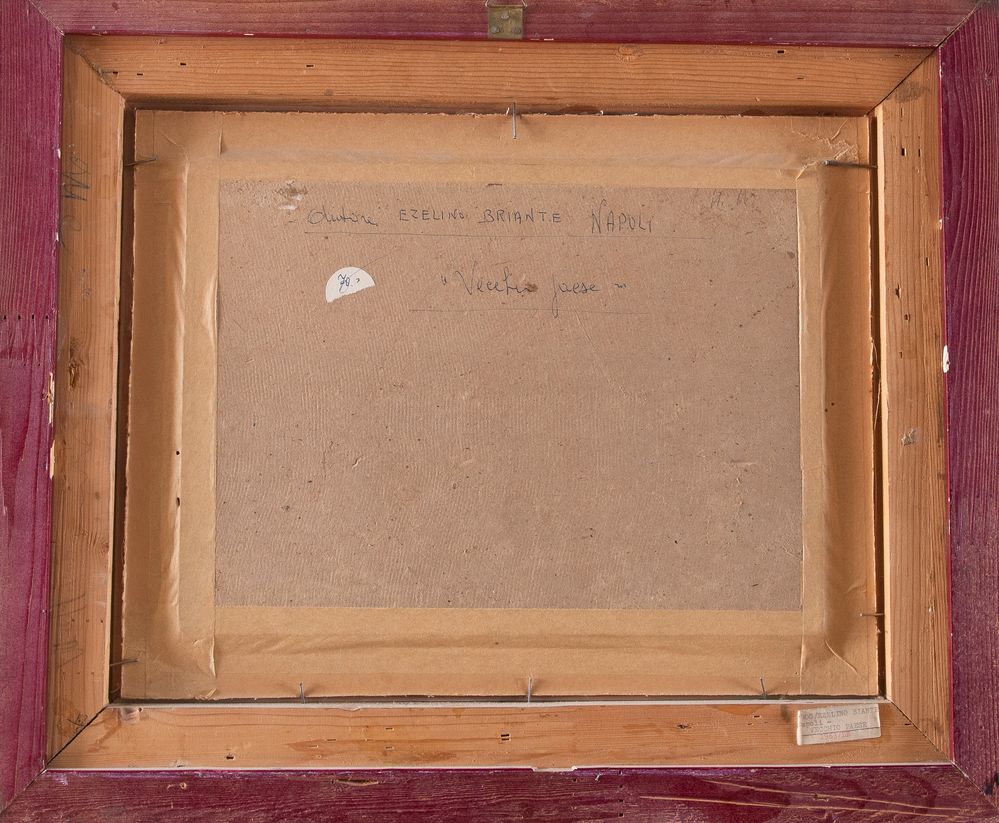 EZELINO BRIANTE (Napoli 1901 - Roma 1971) "Vecchio paese". Olio su cartone. Cm 27x37. Opera firmata in basso a sinistra E. Briante.