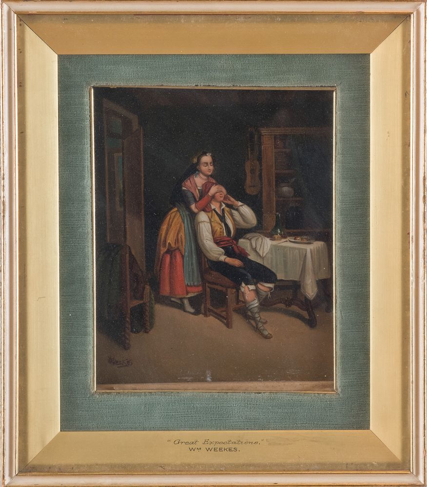 HERBERT WILLIAM WEEKES (Londra 1841 - 1914), attr. "Great expectations". Olio su metallo. Cm 23x18. Opera firmata in basso a sinistra W Weekes.