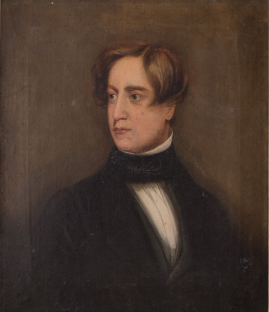 Maestro del XIX secolo. "Ritratto di giovane gentiluomo". Olio su tela. Cm...