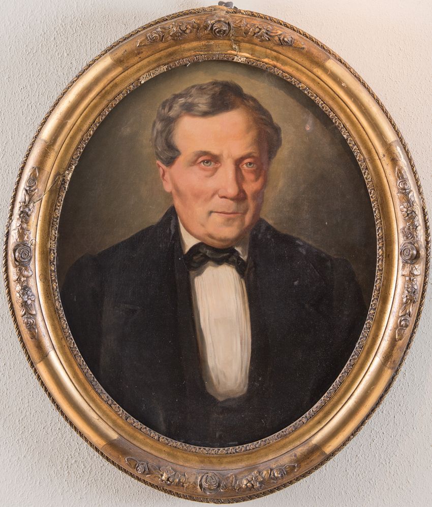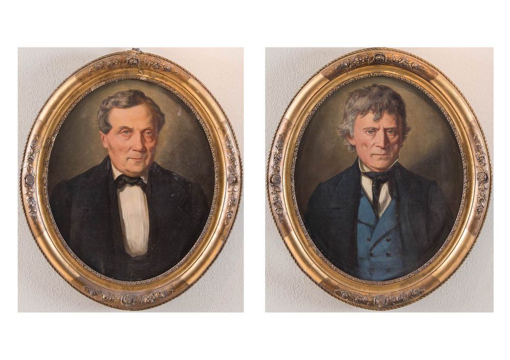 Maestro del XIX secolo. Coppia di ritratti maschili. Oli su tela. Rispettivamente di cm 61,5x49 e cm 61x49,7. Un ritratto, al retro reca data 1860.