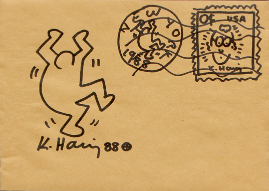 HARING Keith (Reading 1958 - New York 1990) Untitled, 1988 pennarello su cartoncino, cm. 16.5 x 23 Autentica della Janisch Fine Art, Dettingen (Germania) Firma, data 'K. Haring, 88' (in basso a sinistra) Provenienza: Centro Arti Visive 'Cristian Mazzolari', Soresina