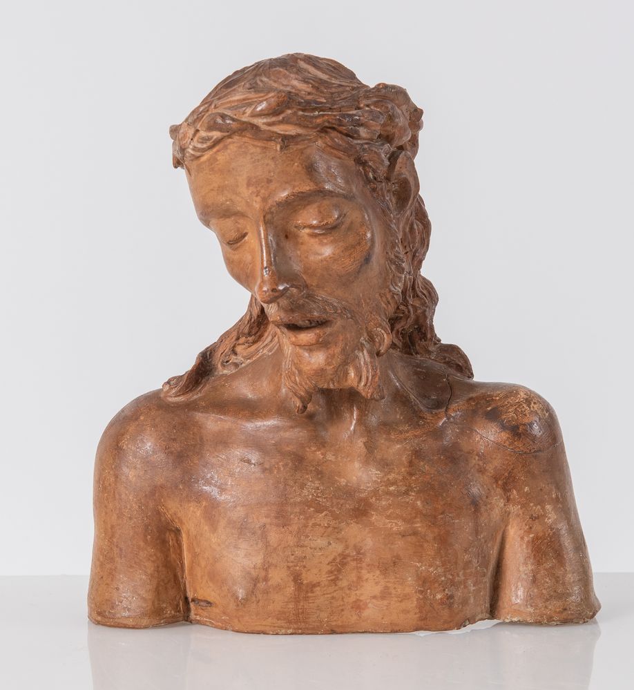 Busto di Cristo in terracotta. Emilia, seconda metà del XVIII secolo. Cm 24,5x23,5x10.