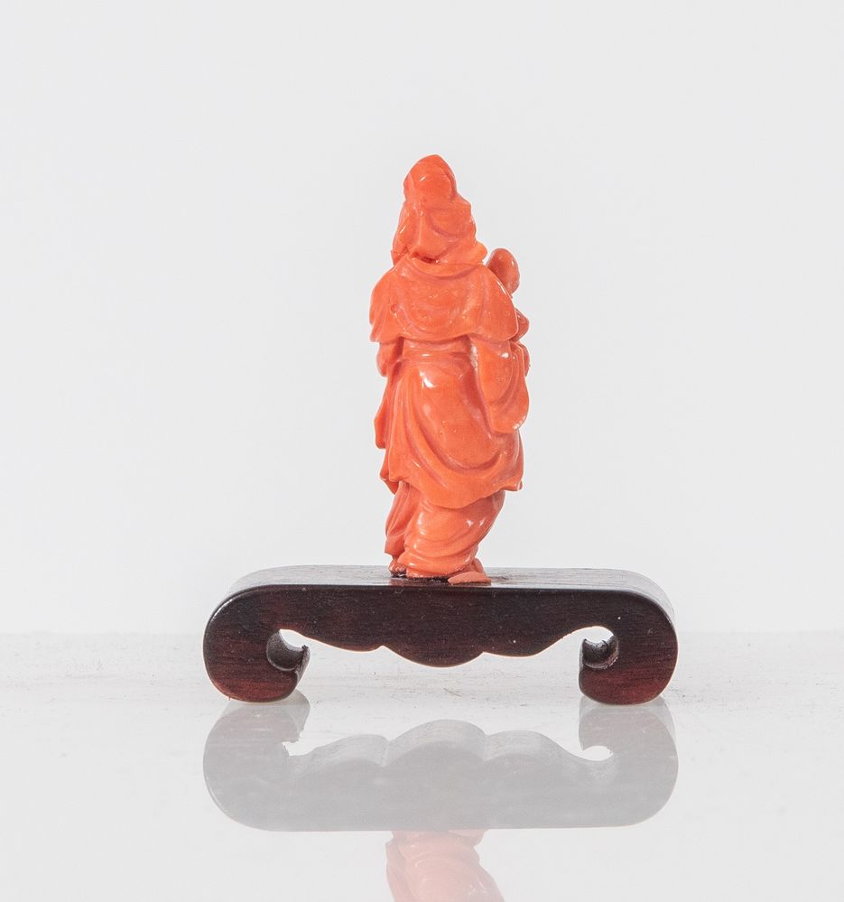 Scultura in corallo Mono o Cerasuolo (Coralium Elatius) raffigurante due Immortali. Corallo di mm 55x20.