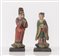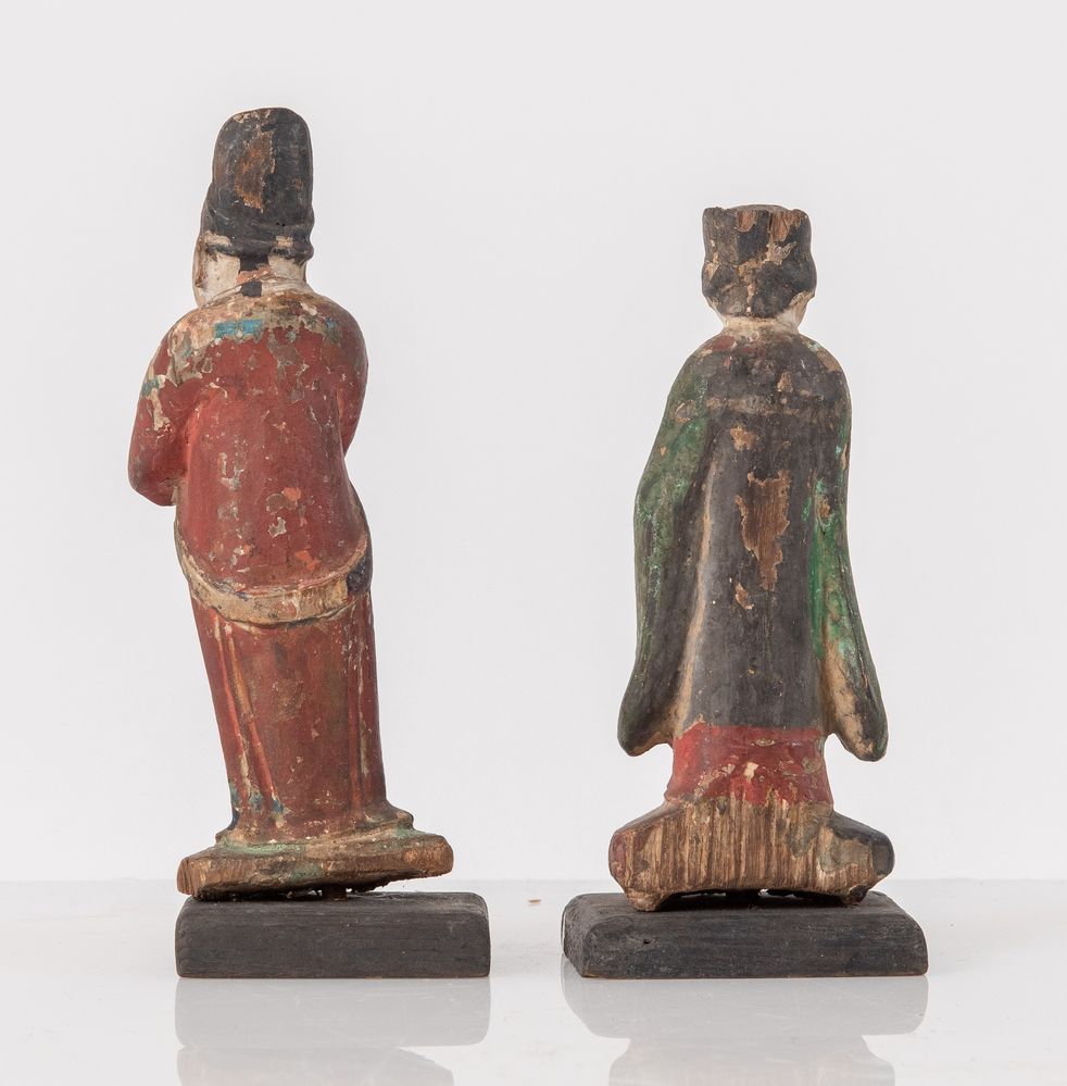 Coppia di sculture in legno policromo. Arte orientale, XVIII secolo. Rispettivamente di H. cm 17 e 15.