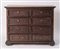 Canterano in massello di noce con fronte formellato e incorniciato....