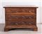 Canterano a ribalta in massello di noce, con fronte formellato e bulinato....