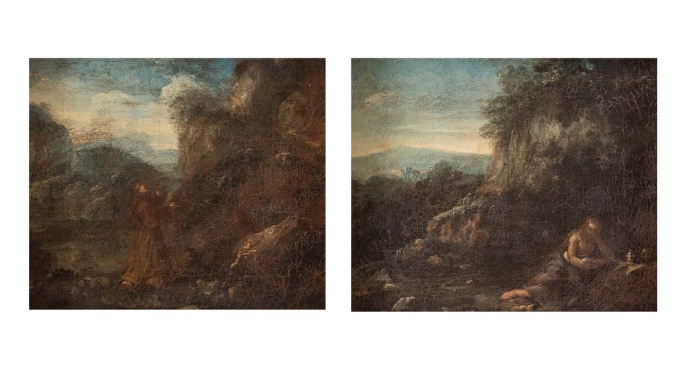 Lot 530 | Maestro del XVII secolo. “Paesaggio con S. Francesco” “Paesaggio con...