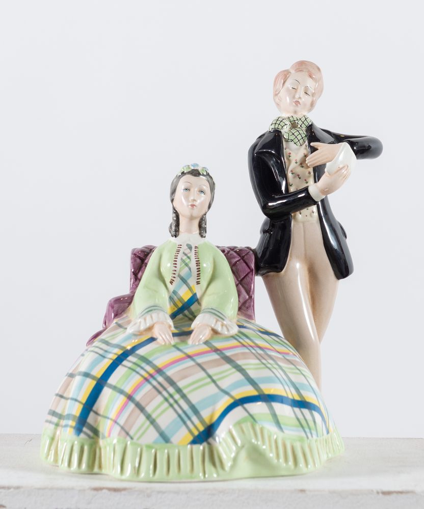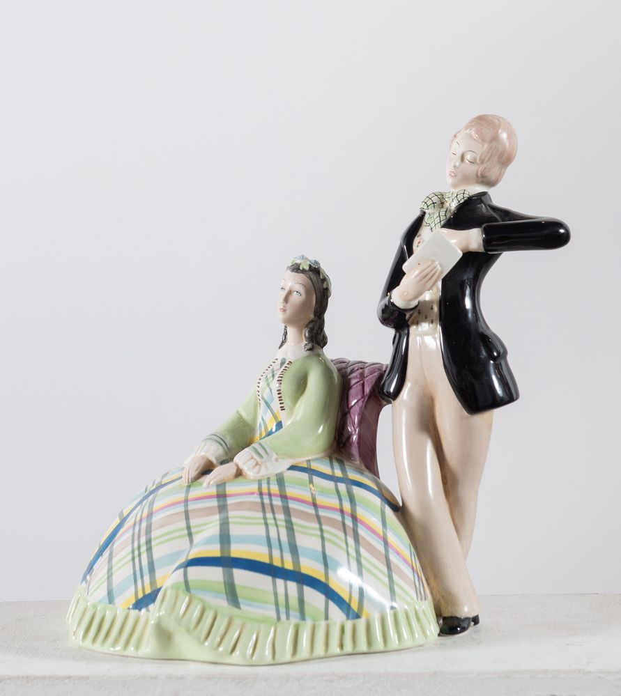 MASSIMO QUAGLINO, MANIFATTURA LENCI Torino, anni 30, "Coppia di innamorati"....