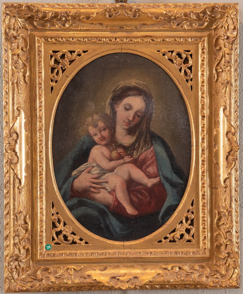 Maestro del XVIII secolo. "Madonna con bambino". Olio su tela. Cm 27,5x20,5