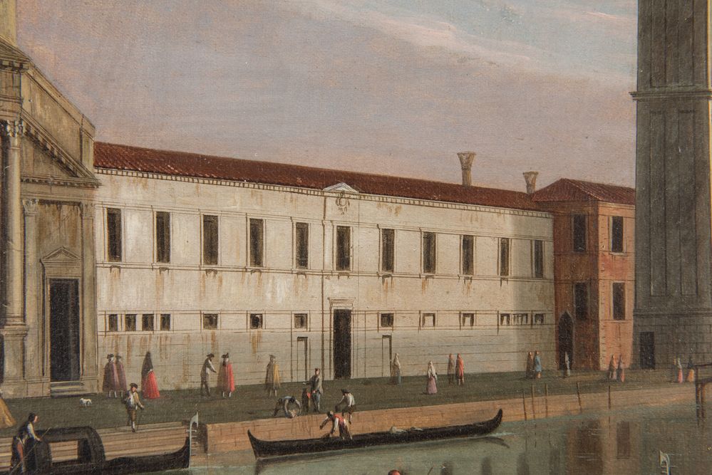 Maestro della Fondazione Langmatt (Apollonio Facchinetti detto Domenichini) "Veduta di San Pietro di Castello". Olio su tela. Cm 72x102. Il dipinto è accompagnato da un parere scritto del prof. Dario Succi. Provenienza: importante collezione privata, Milano.