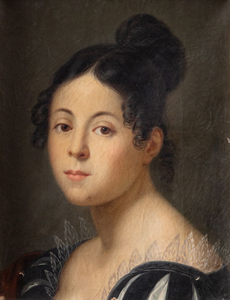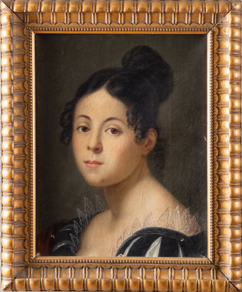 Maestro degli inizi del XIX secolo "Ritratto femminile". Olio su tela. Cm 44,5x33,5.
