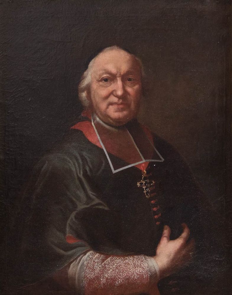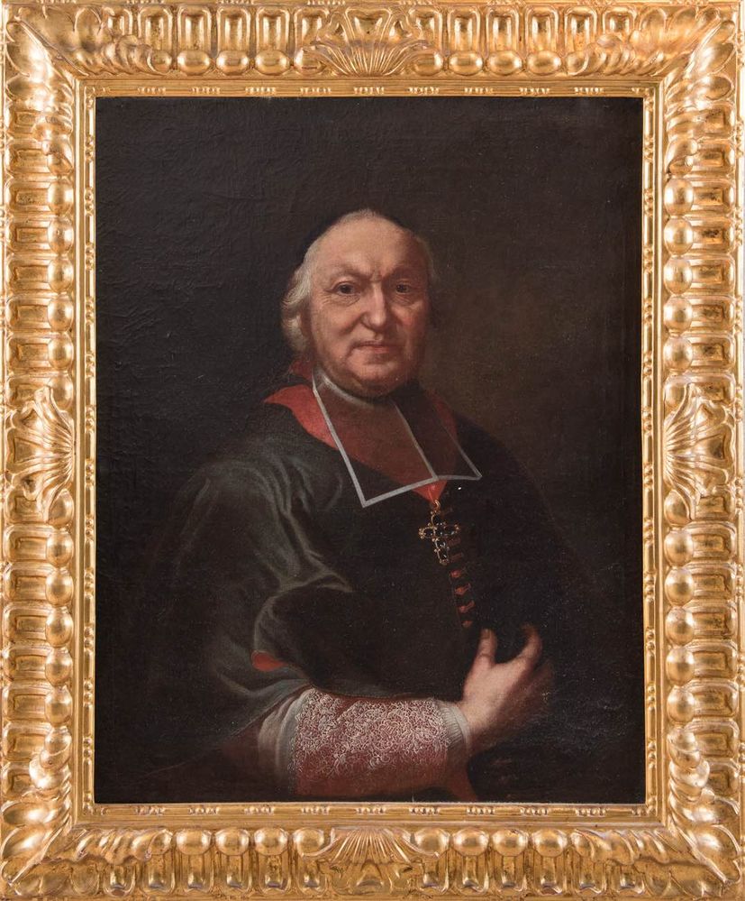 Maestro francese del XVIII secolo. “Ritratto di prelato”. Olio su tela. Cm 80x62,5.