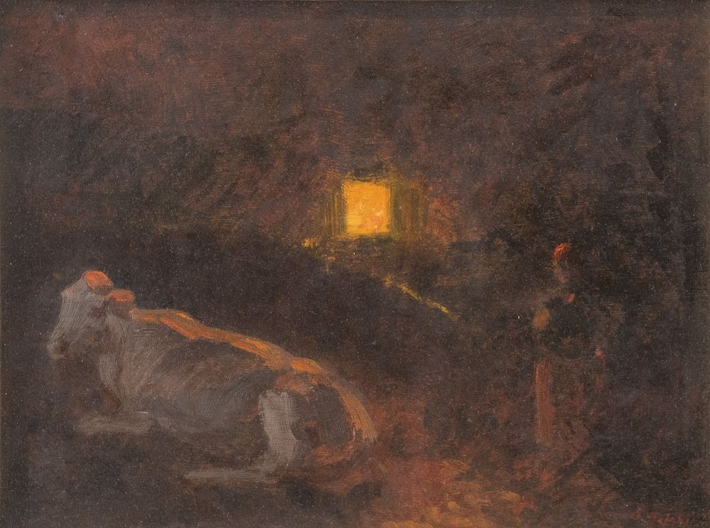 Lot 589 | AUGUSTO MAJANI (Budrio 1867 - Buttrio 1959) "Scena d'interno". Olio su...