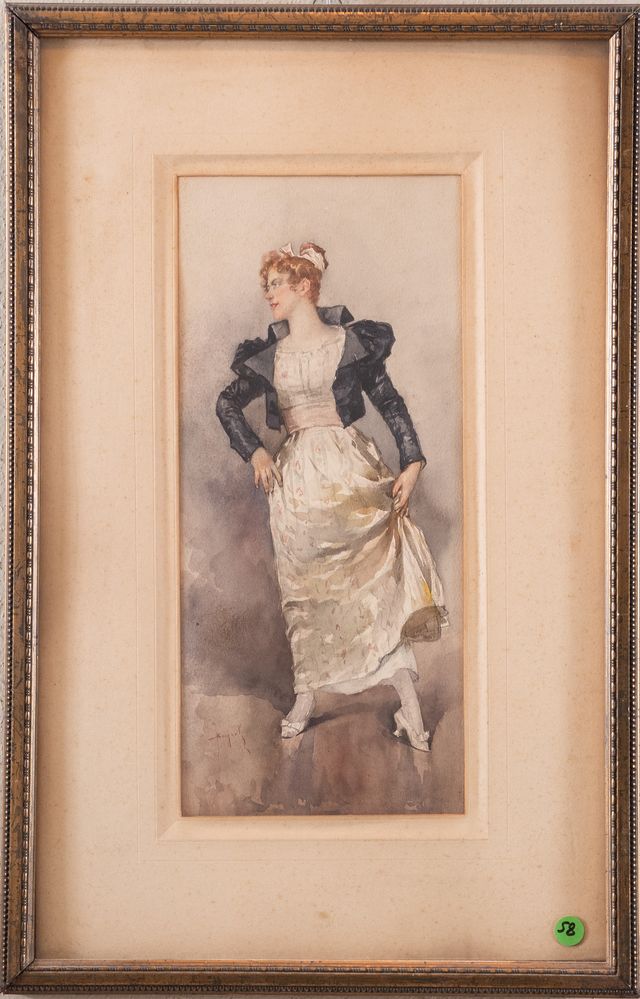 EMANUELE BRUGNOLI (Bologna 1859 - Venezia 1944) "Nobildonna". Acquerello su carta. Cm 34,5x15,5. Opera firmata in basso a sinistra Brugnoli.