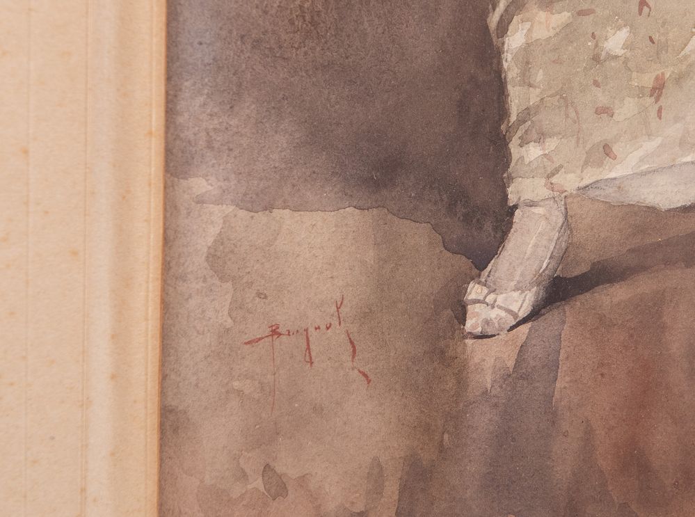 EMANUELE BRUGNOLI (Bologna 1859 - Venezia 1944) "Nobildonna". Acquerello su...