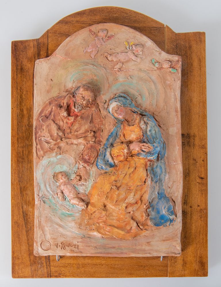 UMBERTO SGARZI (Bologna 1921 - 2017) "Sacra famiglia". Scultura in terracotta. Cm 39x23. Opera firmata in basso a sinistra U. Sgarzi.