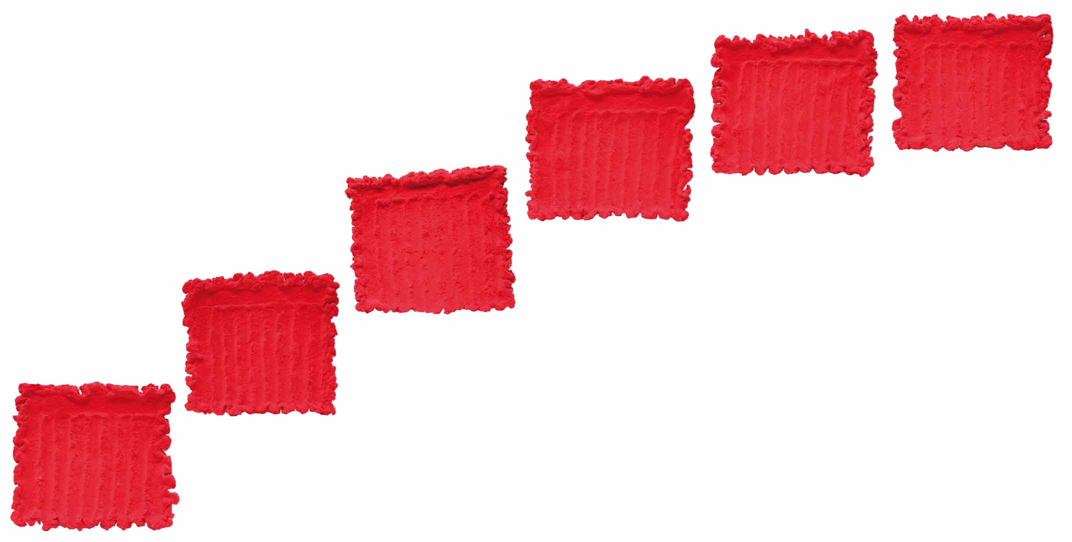 PINELLI Pino (Catania 1938) Pittura R, 1996 tecnica mista, cm. 37 x 34 Autentica dell'artista su fotografia Opera composta da N° 6 elementi. Le misure si riferiscono ad ogni singolo elemento #Titolo, data, firma, 'Pittura R, Milano, 1996, Pino Pinelli, Opera di N 6 elementi' (al retro del primo elemento)