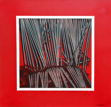 SCANAVINO Emilio (Genova 1922 - Milano 1986) Senza titolo, anni 80 acrilico su cartoncino pressato su tavola, cm. 50 x 50 Autentica a cura di Giuseppe Gastaldelli, in data Milano, 15/12/1991 Firma 'Scanavino' (in basso a destra)