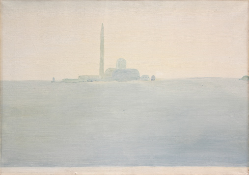 GUIDI Virgilio (Roma 1891 - Venezia 1984) Isola di S. Giorgio, 1956 olio su tela, cm. 50 x 70 Autentica a cura di Toni Toniato Firma, data 'Guidi, 1956'; #etichetta e timbro della Galleria Tortora, Ferrara (al retro)