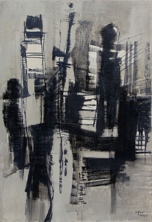 AFRO Basaldella (Udine 1912 - Zurigo 1976) Senza titolo, 1953 tecnica mista su carta intelata, cm. 98.5 x 65 Firma, data 'Afro, 1953' (in basso a destra) Provenienza: Collezione privata, Lodi