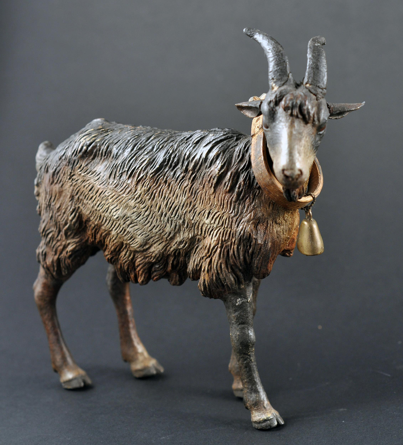 Capra in terracotta policroma cm 16x16 accessori: campana Napoli XVIII-XIX secolo