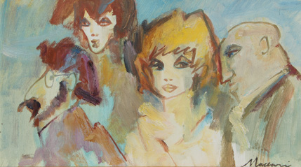 MACCARI Mino (Siena 1898 - Roma 1989) Figure olio su cartone intelato, cm. 20 x 35 Firma 'Maccari' (in basso a destra)