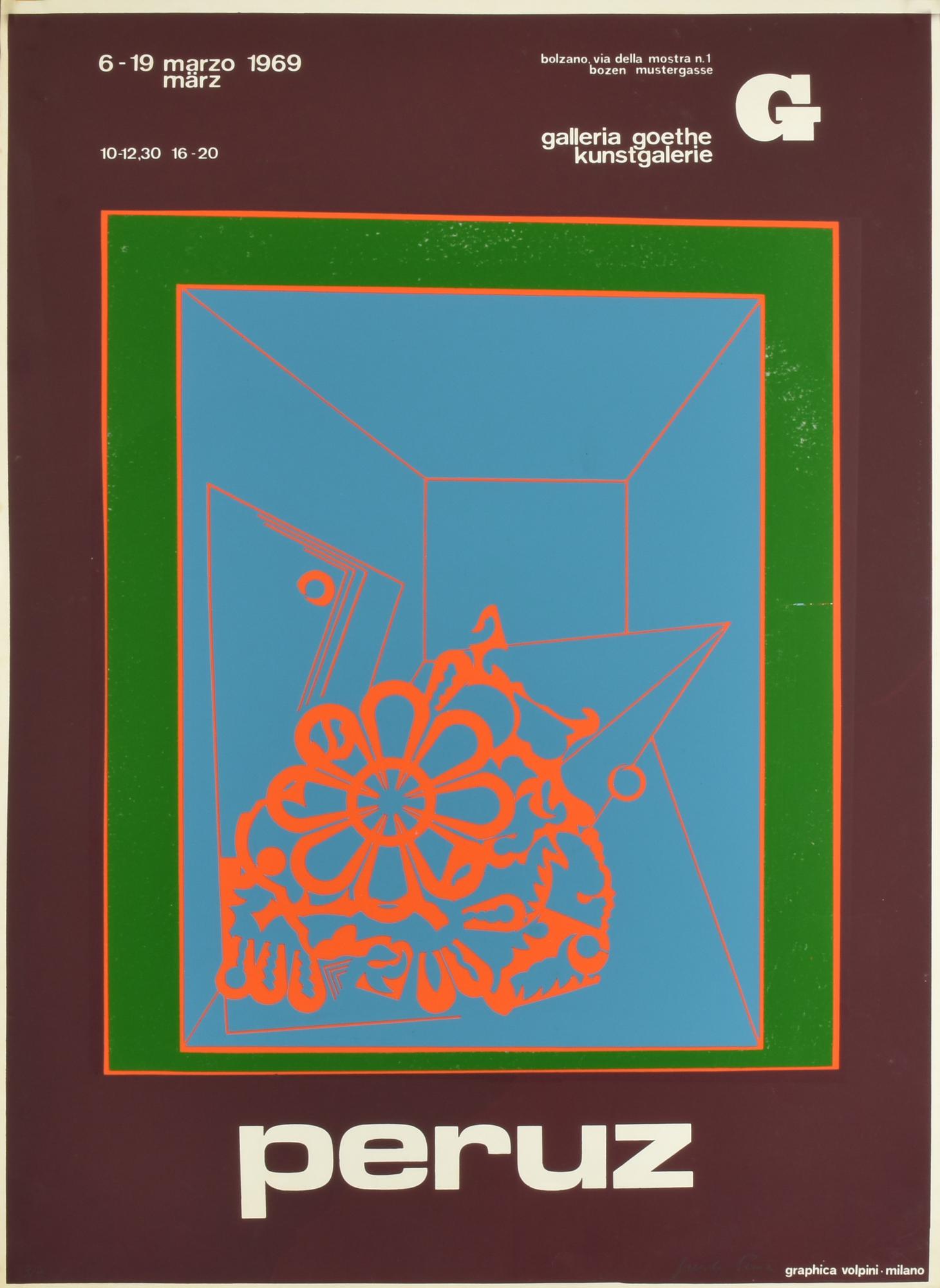 realizzato da grafica Volpini, Milano per la mostra 'Peruz' tenutasi alla Galleria Goethe di bolzano nel marzo 1969.