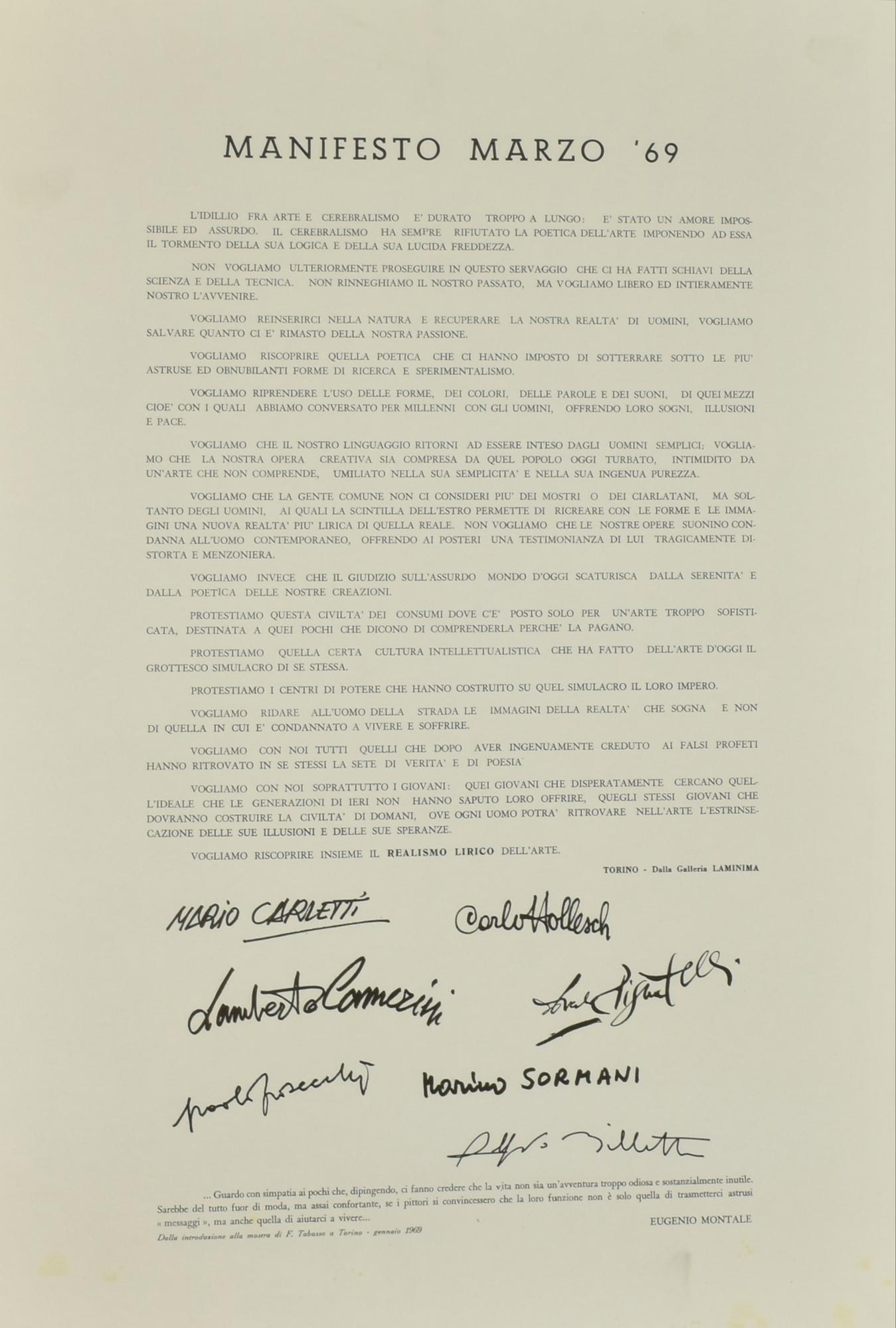 Lot 261 | MANIFESTO MARZO 69 manifesto, 69x43 cm realizzato dalla Galleria Laminima,...