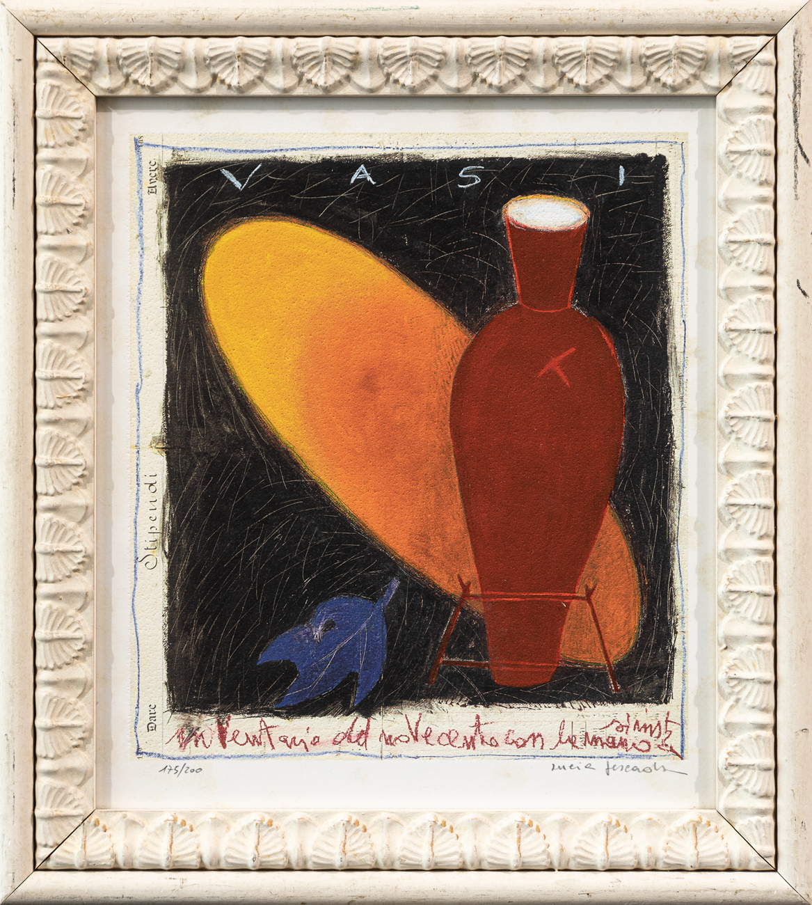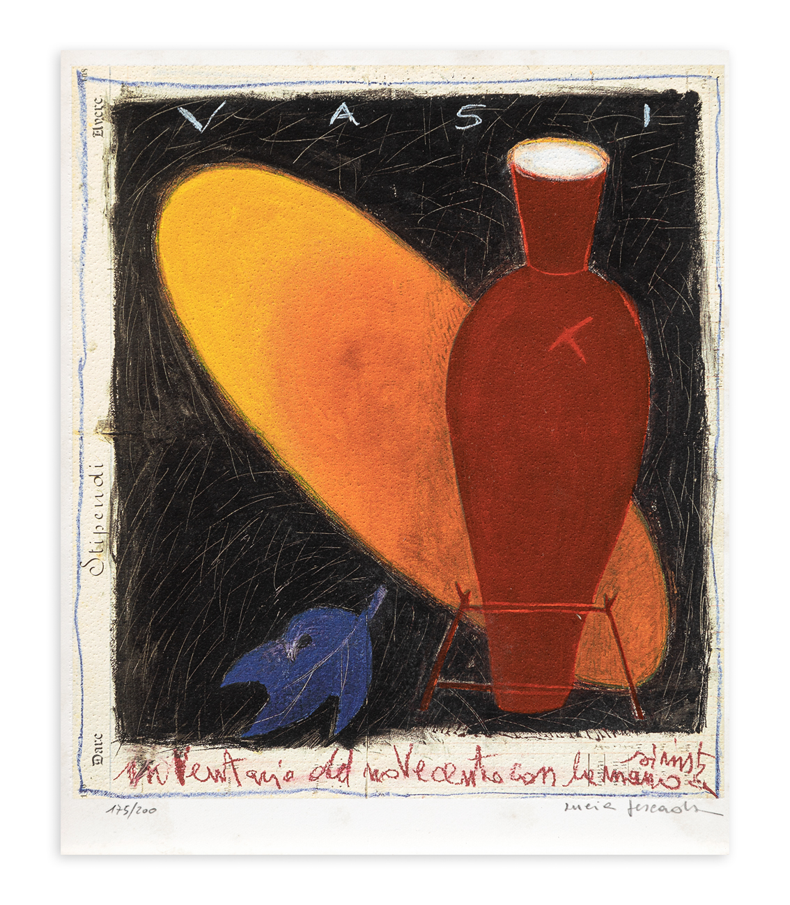 Firma e numerazione (Esemplare 175/200) a matita al fronte