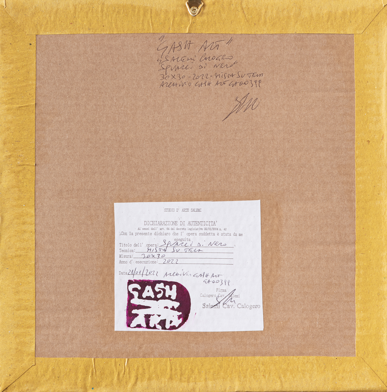 Etichetta dell'Artista al retro