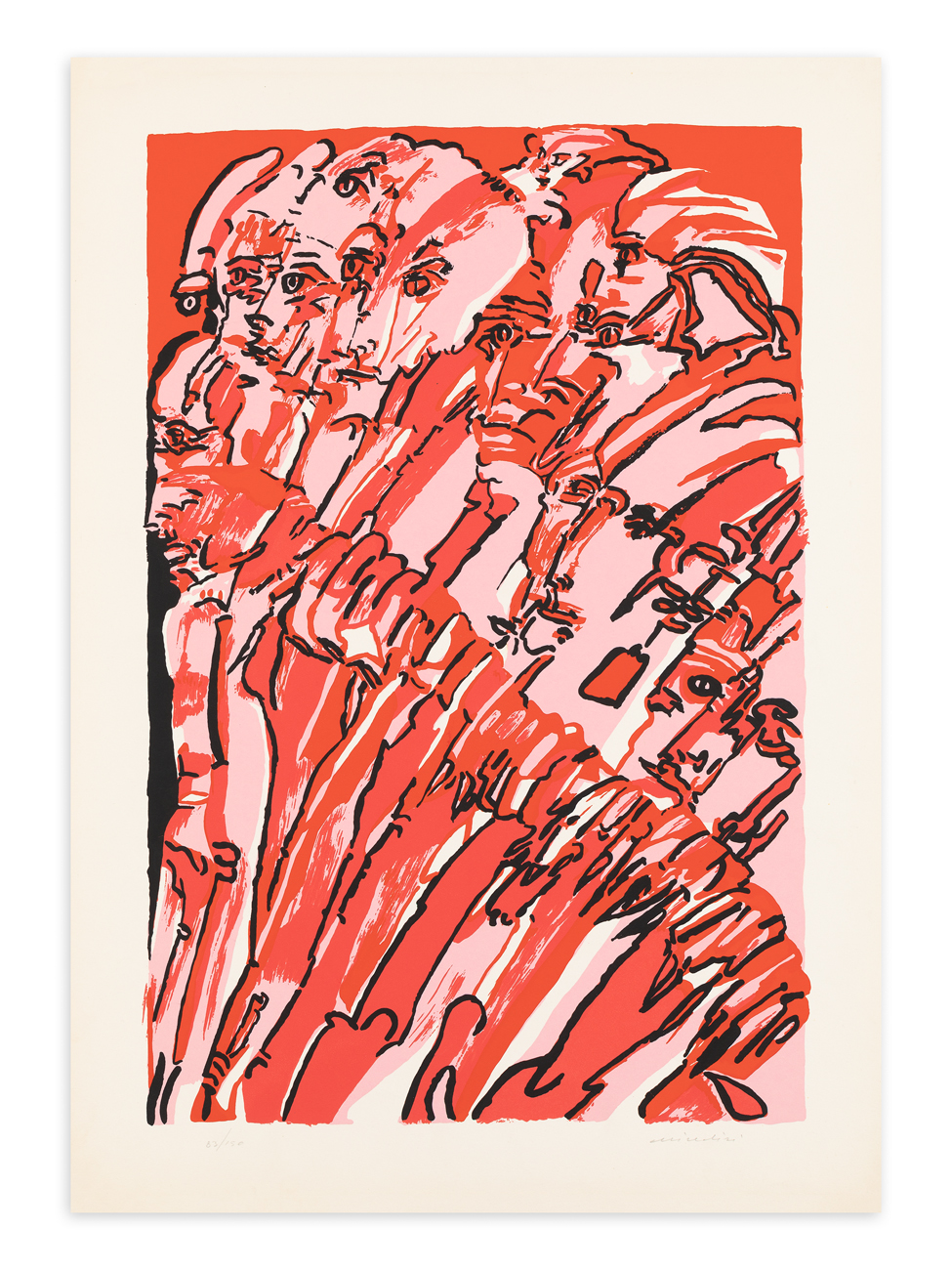 Firma e numerazione (Esemplare 83/150) a matita al fronte