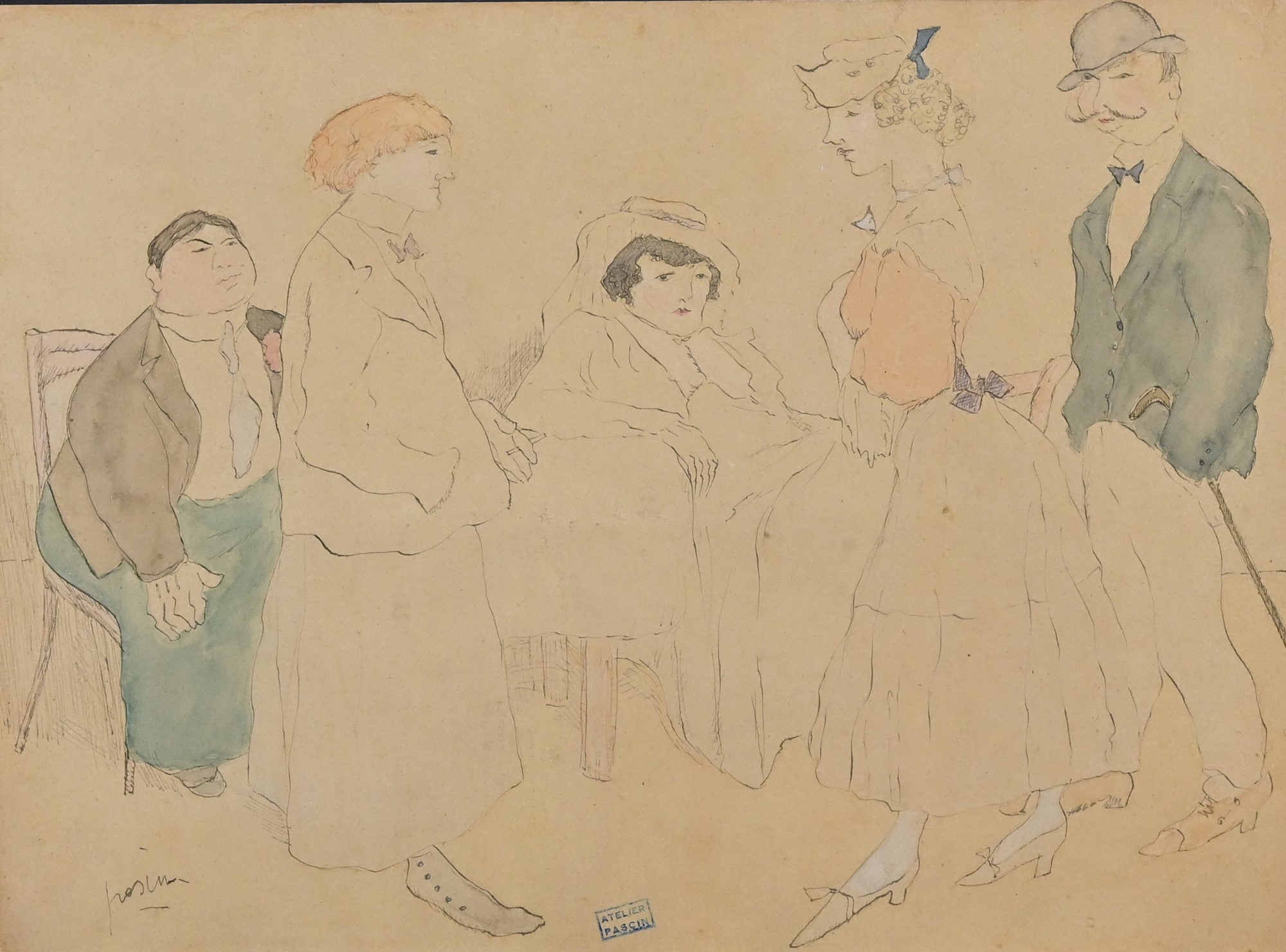 Firma in basso a sinistra, timbro "Atelier Pascin" in basso al centro.