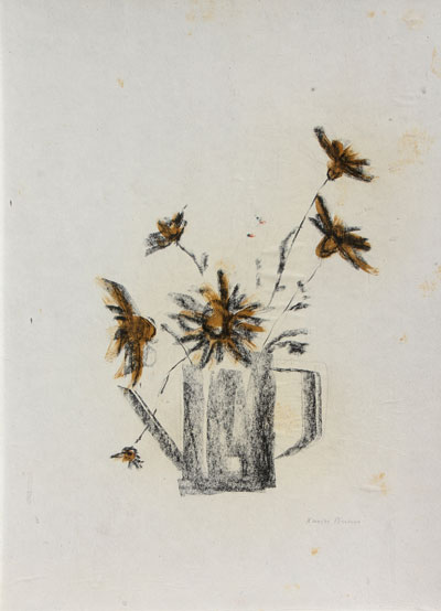 BUENO Xavier (Vera de Bidasoa 1915 - Fiesole 1979) Natura morta, 1965 tecnica mista su cartone, cm. 49 x 35 Autentica a cura del figlio Raffaele Bueno Firma 'Xavier Bueno' (in basso a destra)