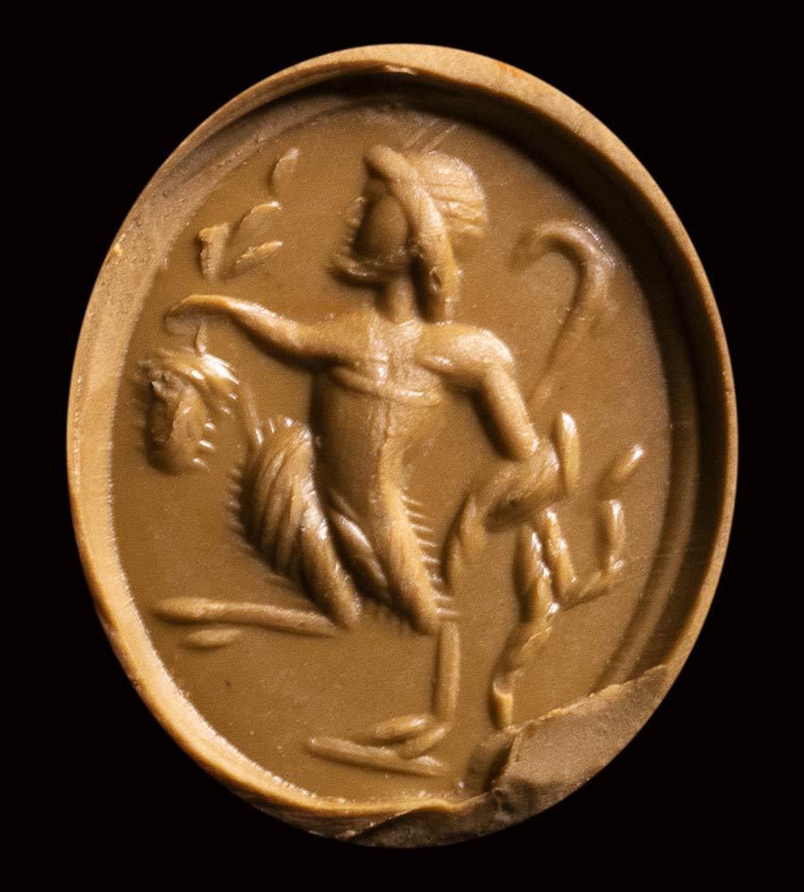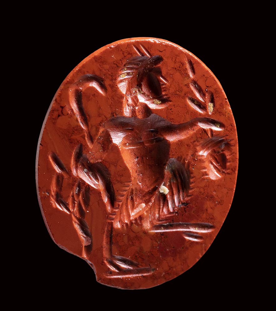 A roman red jasper intaglio. Pan. <br><br>2nd - 3rd century A.D.