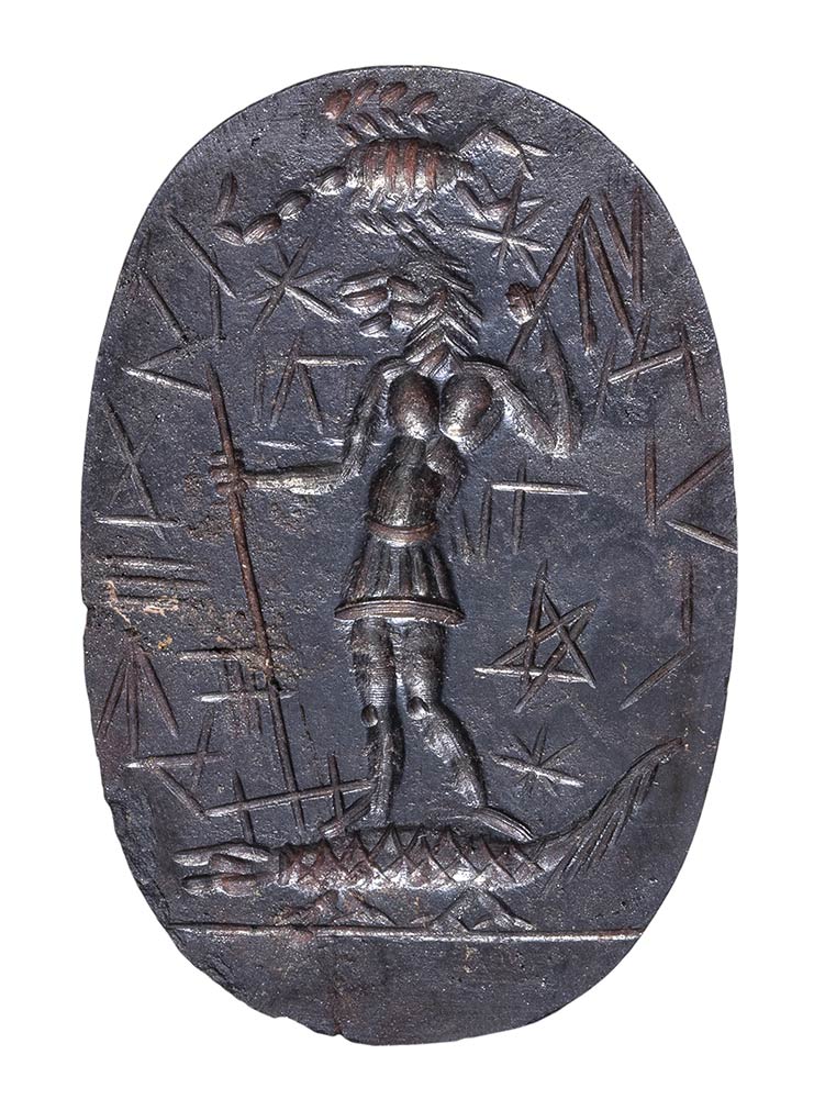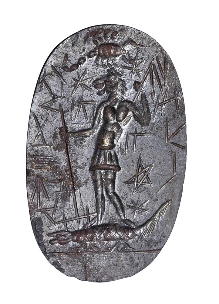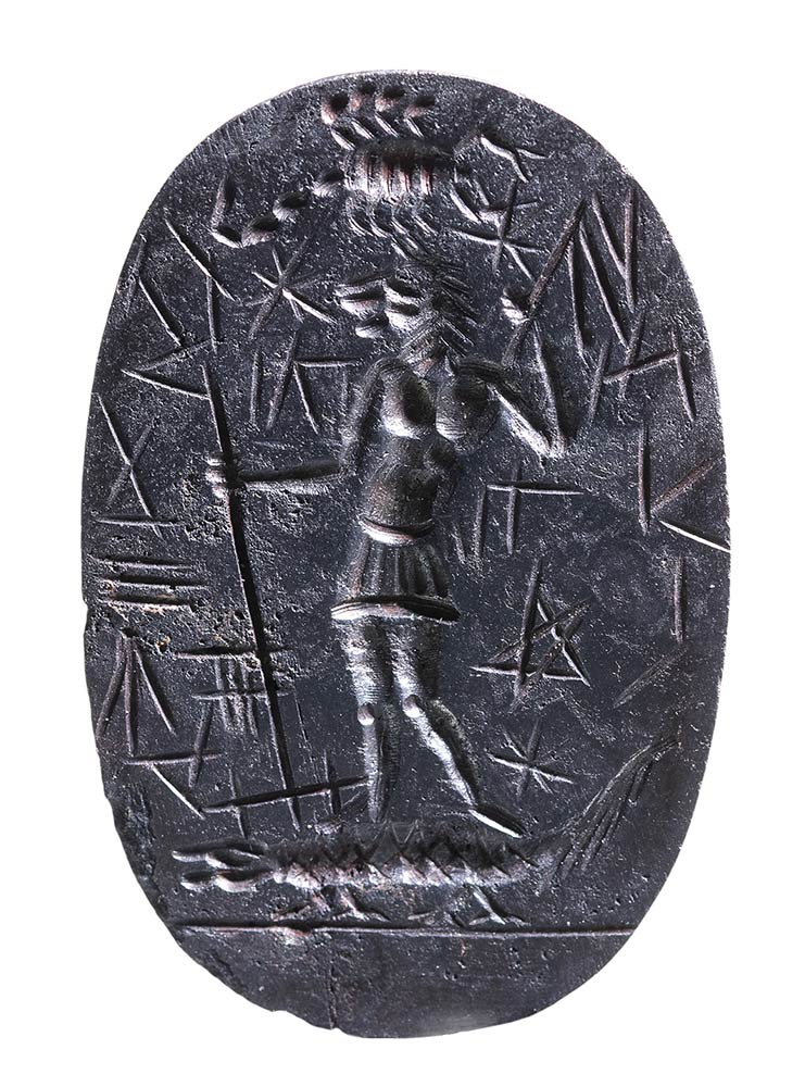 A large eastern roman gnostic hematite intaglio. Anubis with astrological symbols. <br><br>3rd century A.D.