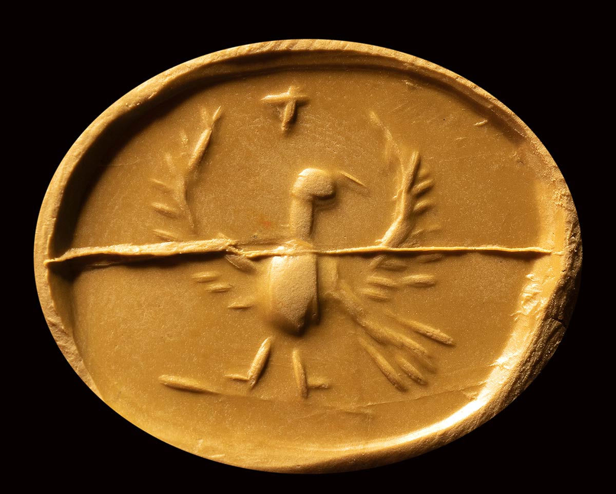 Lot 231 | A roman hematite gnostic intaglio. Reaper- Eagle. 2nd - 3rd century A.D.