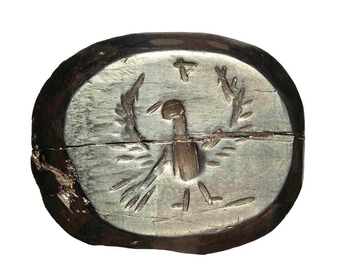 A roman hematite gnostic intaglio. Reaper- Eagle. 2nd - 3rd century A.D.