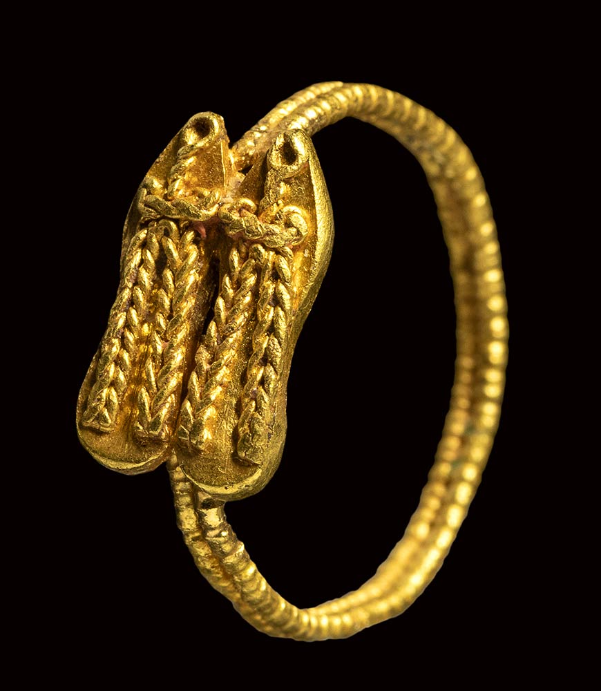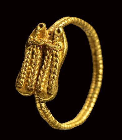 A Fatimid gold filigree gold ring (Egypt or Syria). Two sandals. 10th - 11th century A.D.