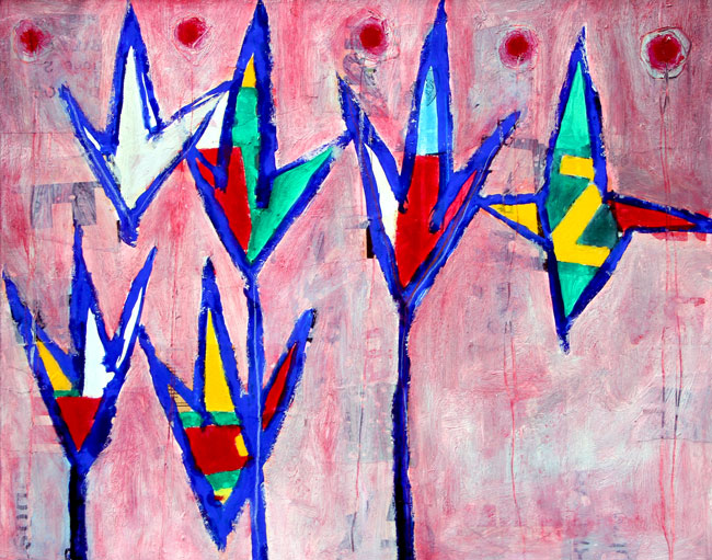 DE MARIA Nicola (Foglianise 1954) Dipinto sposa rosa + angeli, 1985 olio e...