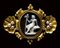 A french onyx cameo set in a gold brooch with pearls. Dyonisus with tyrsus.
