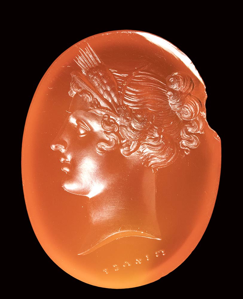 A fine carnelian intaglio by Pichler. Head of Ceres.