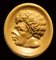 A carnelian intaglio set in a gold fob seal. Male grotesque portrait.
