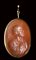 A neoclassical carnelian intaglio set in a gold devotional pendant. Bust of Saint.