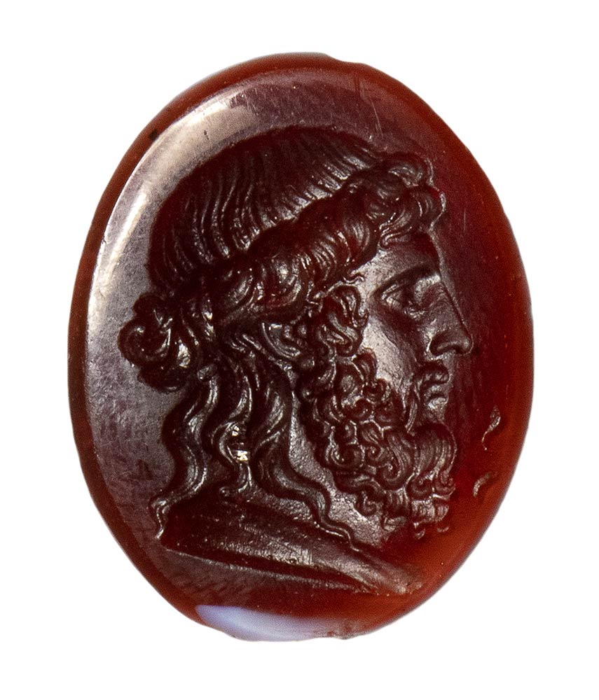 A glass paste impression. Aesclepius.<br><br>19th century.